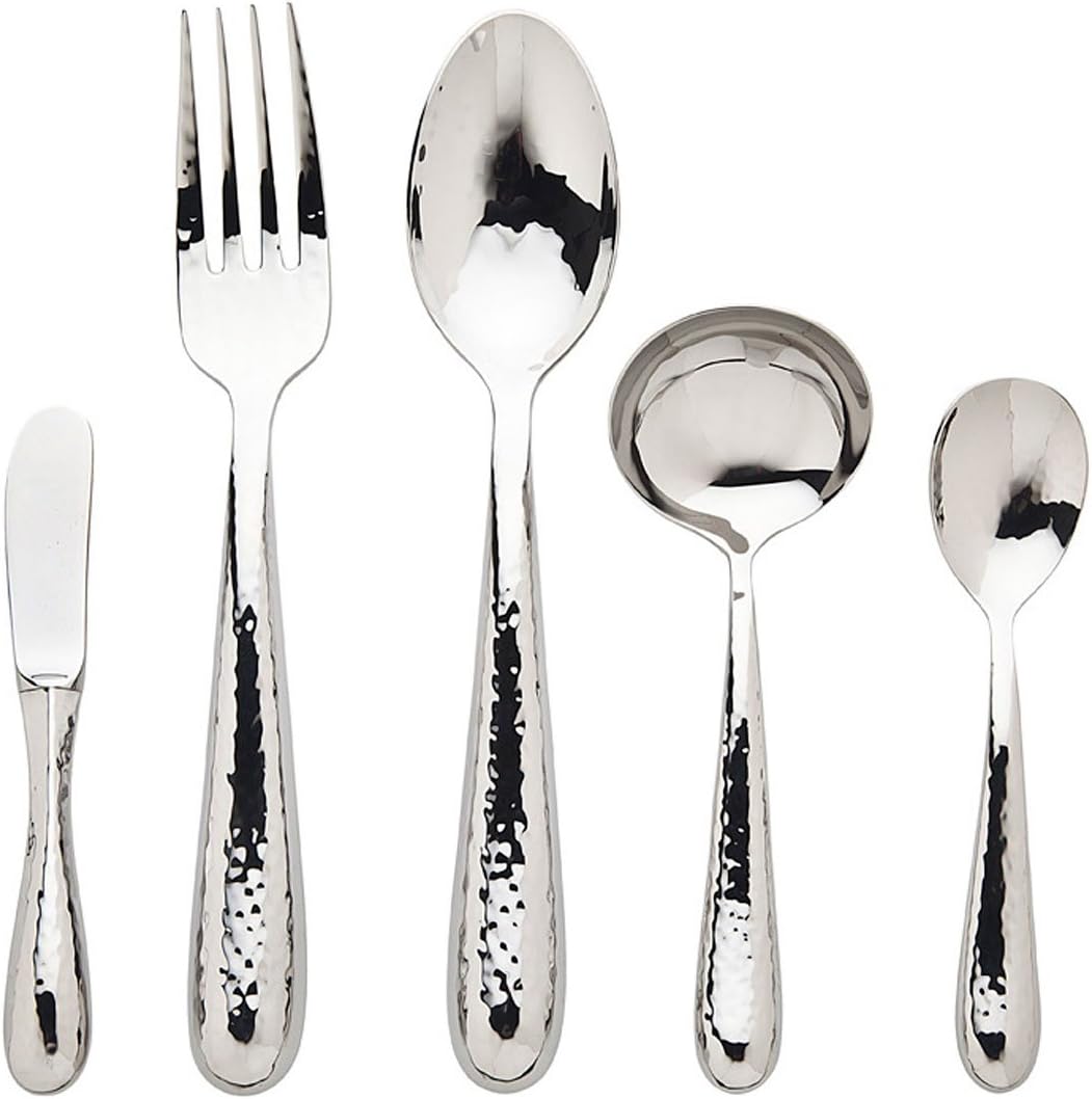 Florence Hammered Polished 5 piece hostess set, from the famous Ricci Silversmiths, has the same beautiful lines and distinctive details as the place setting pieces. This lovely set will easily accompany any flatware pattern.